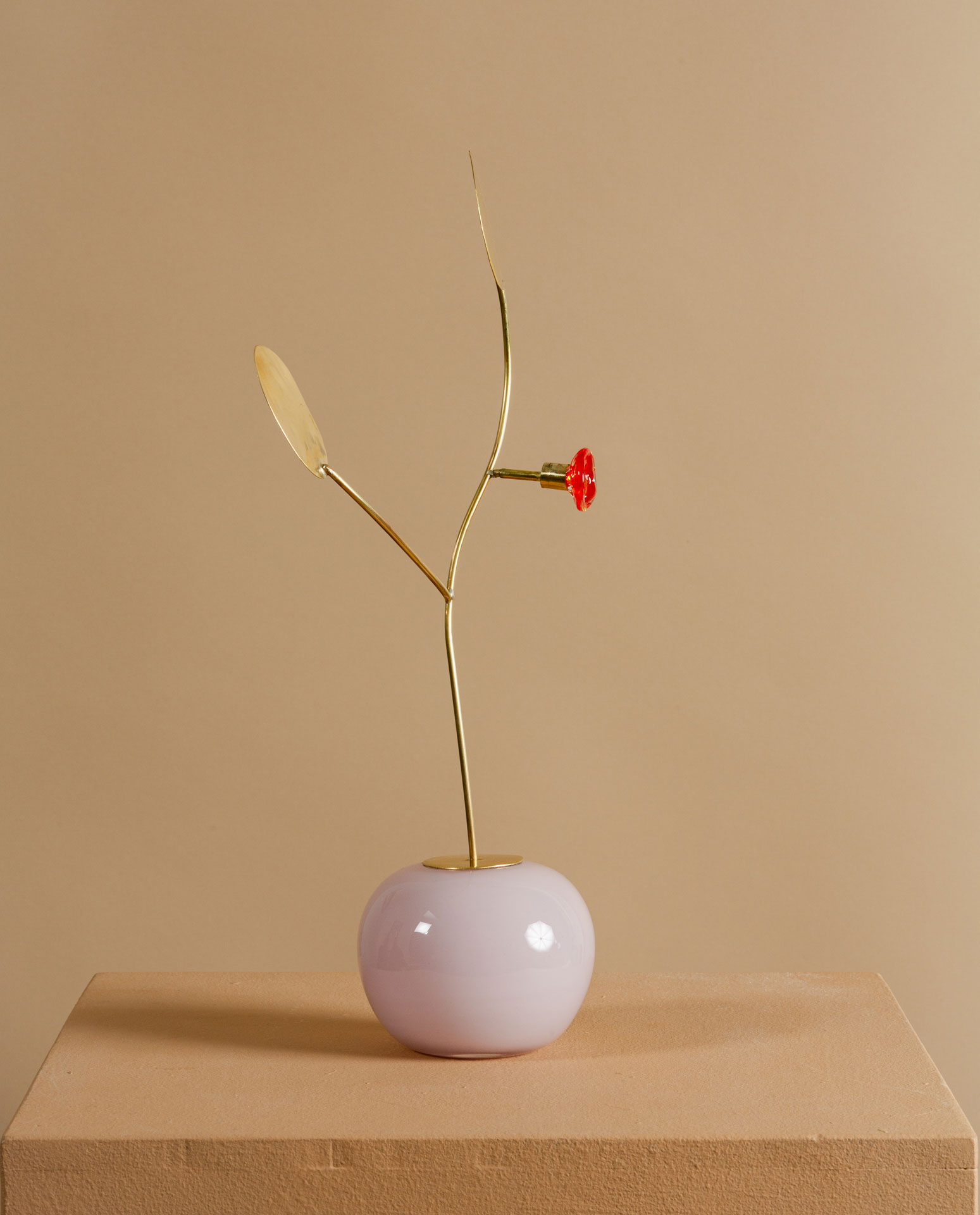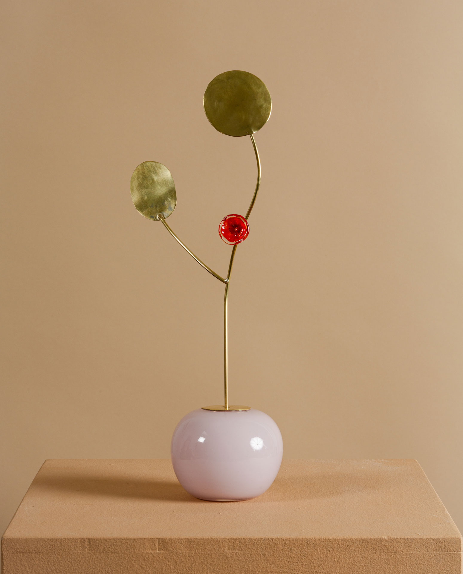 Milla Vaahtera on suunnittelija ja taiteilija, joka tunnetaan teoksistaan, joissa yhdistyvät rohkeat lasiosat herkkään messinkiin. Hänen teostensa teemat ulottuvat kehonkuvasta ja seksuaalisuudesta, intuitioon ja yhteistyöhön luomisprosessissa. Aloitettuaan arjasta Dialogue, joka oli esillä vuonna 2017 Suomen Designmuseossa, hän on jatkanut matkaansa mobileista veistoksellisiin valaisimiin ja uniikkeihin tarjoiluastioihin. Teosten tekoprosessi perustuu dialogiin ja improvisaatioon lasinpuhaltajien kanssa. Vaahtera rakastaa odottamattomia lopputuloksia ja tasapainon löytämistä loppullisessa teoksessa.
