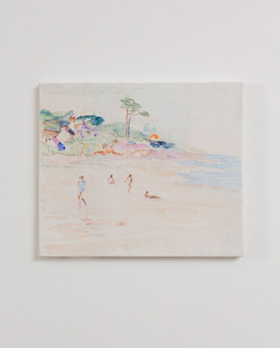 Inspired by coastal scenery, fine artist Eva Lamppu paints pictures of the sea and bathers. The artist enjoys painting outdoors on-site, depicting a constantly changing view. People move, the light shifts and affects the atmosphere. Lamppu paints with thin layers of tempera and watercolour, aiming for a spontaneous and luminous result.