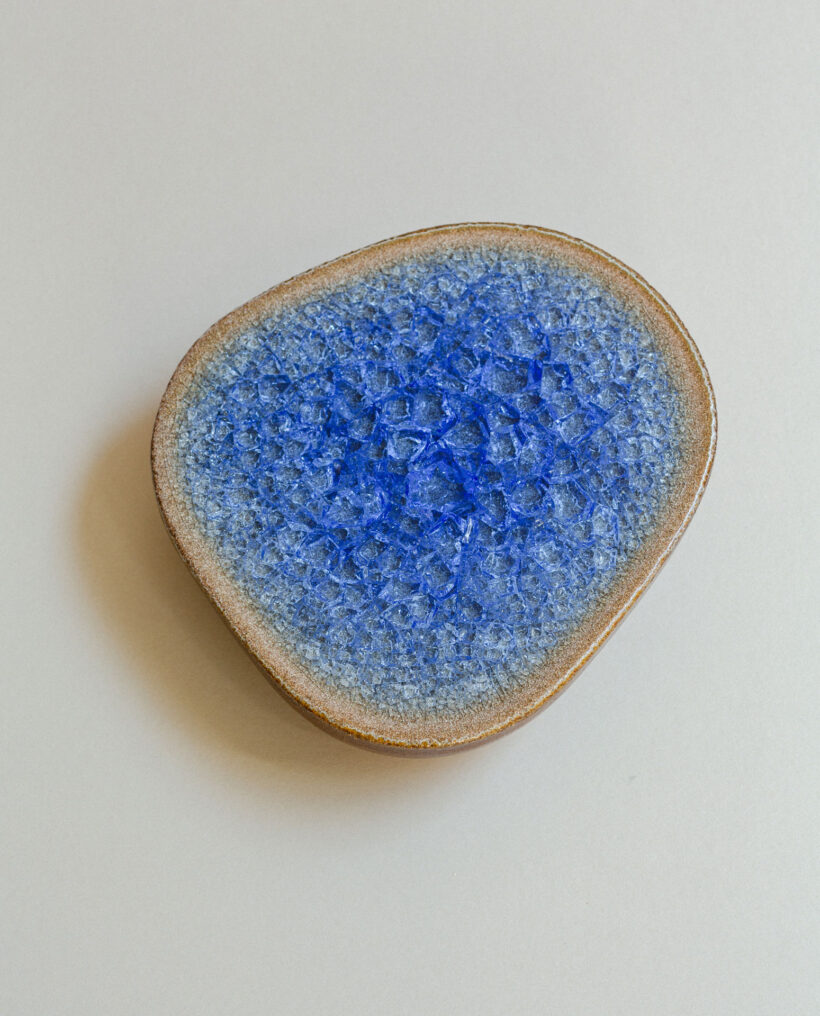 | Year | 2026 | Medium | Press moulded stoneware and recycled coloured glass | Size | 23 x 21 x 5 cm |